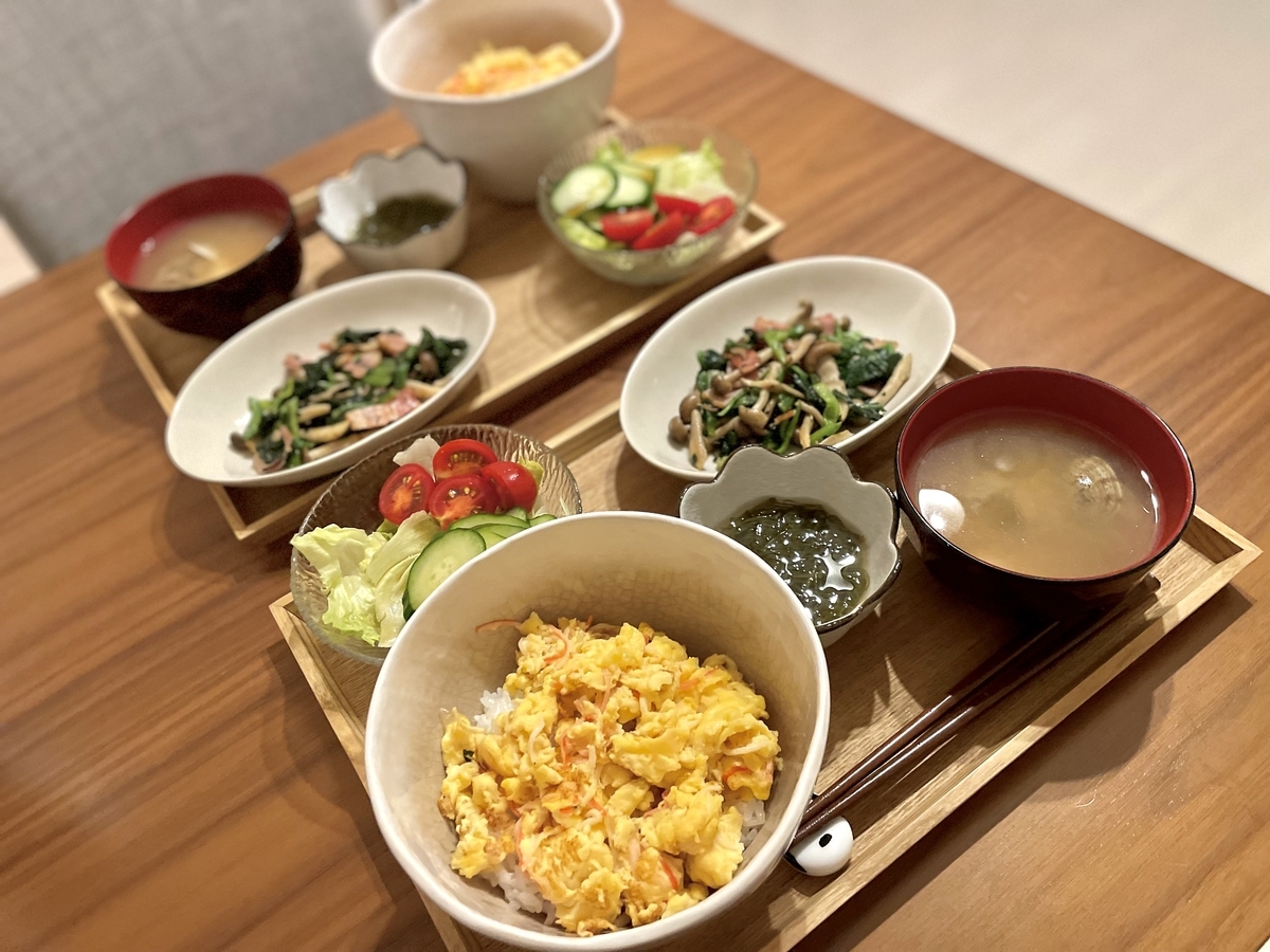 ほうれん草としめじとベーコンのソテーはそのまんまです。